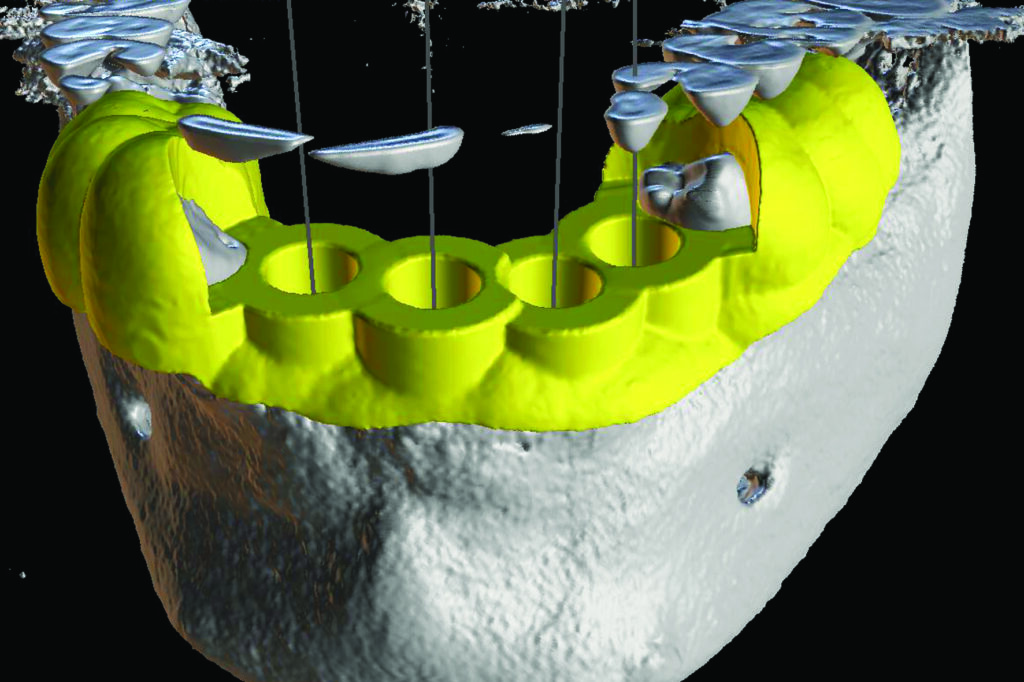 La chirurgie buccale guidée utilise des images de tomographie par ordinateur à faisceau conique (CBCT 3D) pour planifier et réaliser avec précision la chirurgie d'implant dentaire. Cette technique innovante améliore la chirurgie implantaire elle-même, la rendant plus rapide, plus facile et plus efficace pour le chirurgien et le patient. Avant la chirurgie, des scans 3D sont réalisés afin qu'ils puissent être étudiés par une équipe de chirurgiens et de techniciens. Dans de nombreux cas, cela implique une récupération plus rapide, moins de saignements et de douleurs, ce qui permet d'effectuer une «mise en charge immédiate» - c'est-à-dire l'application de dents fixes sur les implants le jour de la chirurgie. Nous le faisons depuis 2014 avec des résultats spectaculaires.