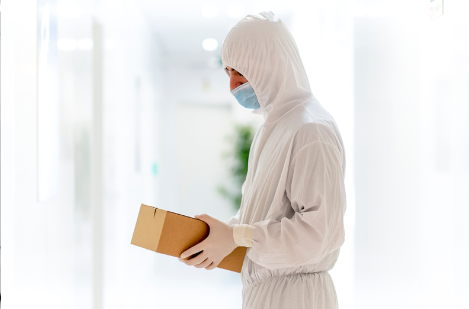Tous les colis (UPS, DHL, laboratoires, etc.) sont nettoyés et désinfectés avant d'être acheminés vers la zone « propre », aussi bien la boîte que son contenu.