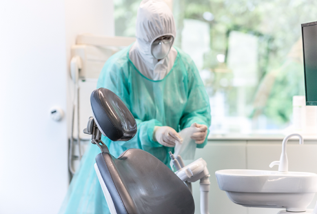 Cabinets médicaux, équipements, portes, surfaces, sols, chaussures, vêtements, air ; tout à la DCLV est désinfecté plusieurs fois par jour, quel que soit le temps que cela peut prendre. C'est la Slow Dentistry® . C'est ainsi que nous garantissons votre sécurité. Nous travaillons ainsi depuis toujours.