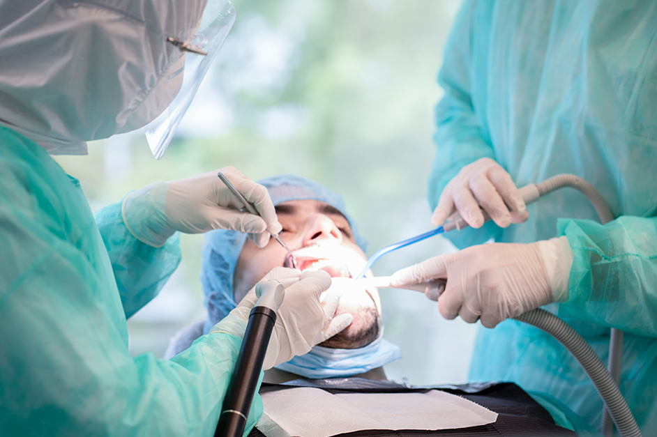 Avant toute observation ou traitement dentaire, le patient doit se rincer à l'eau oxygénée (H2O2) pendant 1 minute puis à la chlorhexidine pendant encore une minute. Il est démontré que cela aide à réduire la charge virale.